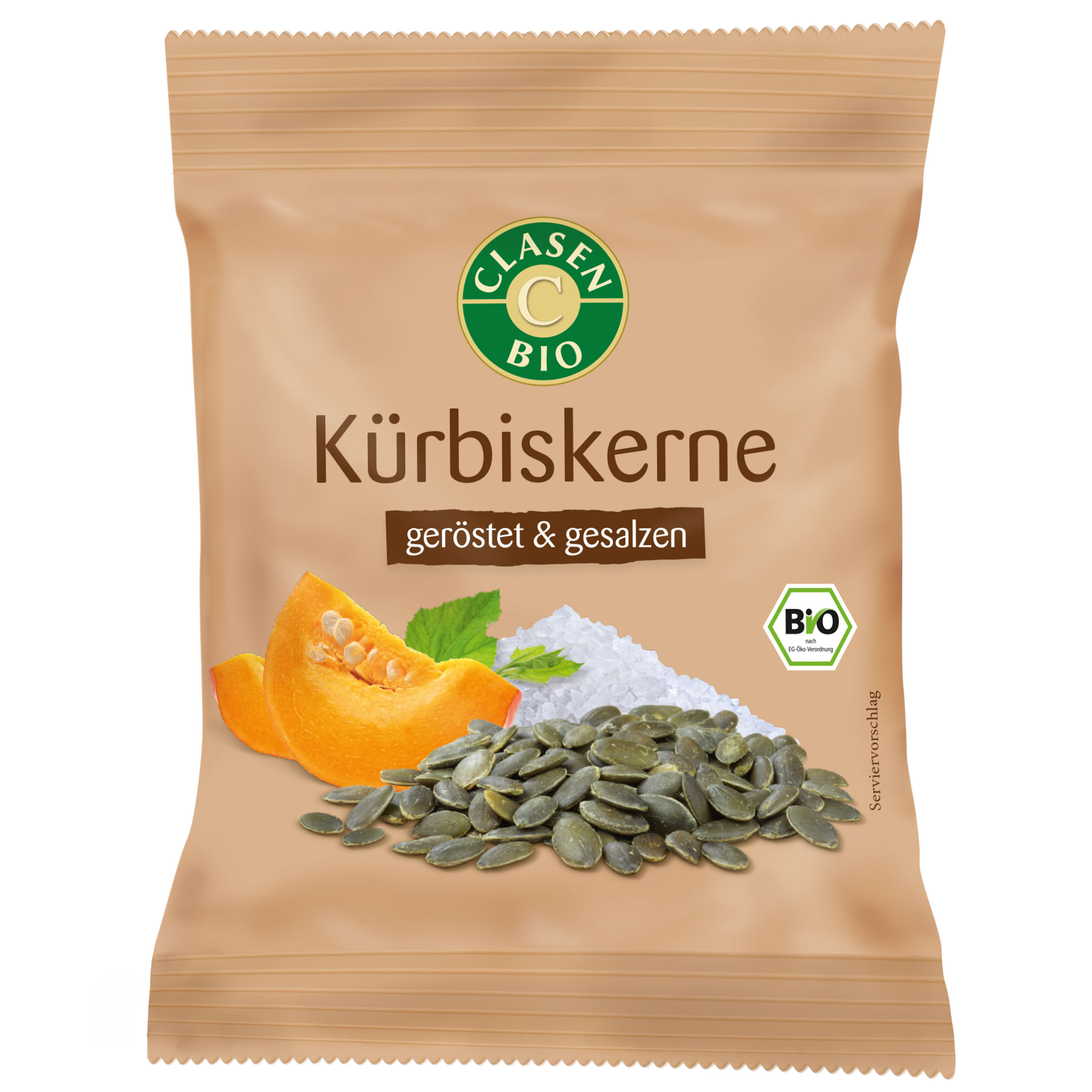 CLASEN BIO Kürbiskerne geröstet & gesalzen – für gesundes und leckeres Snacken in einem