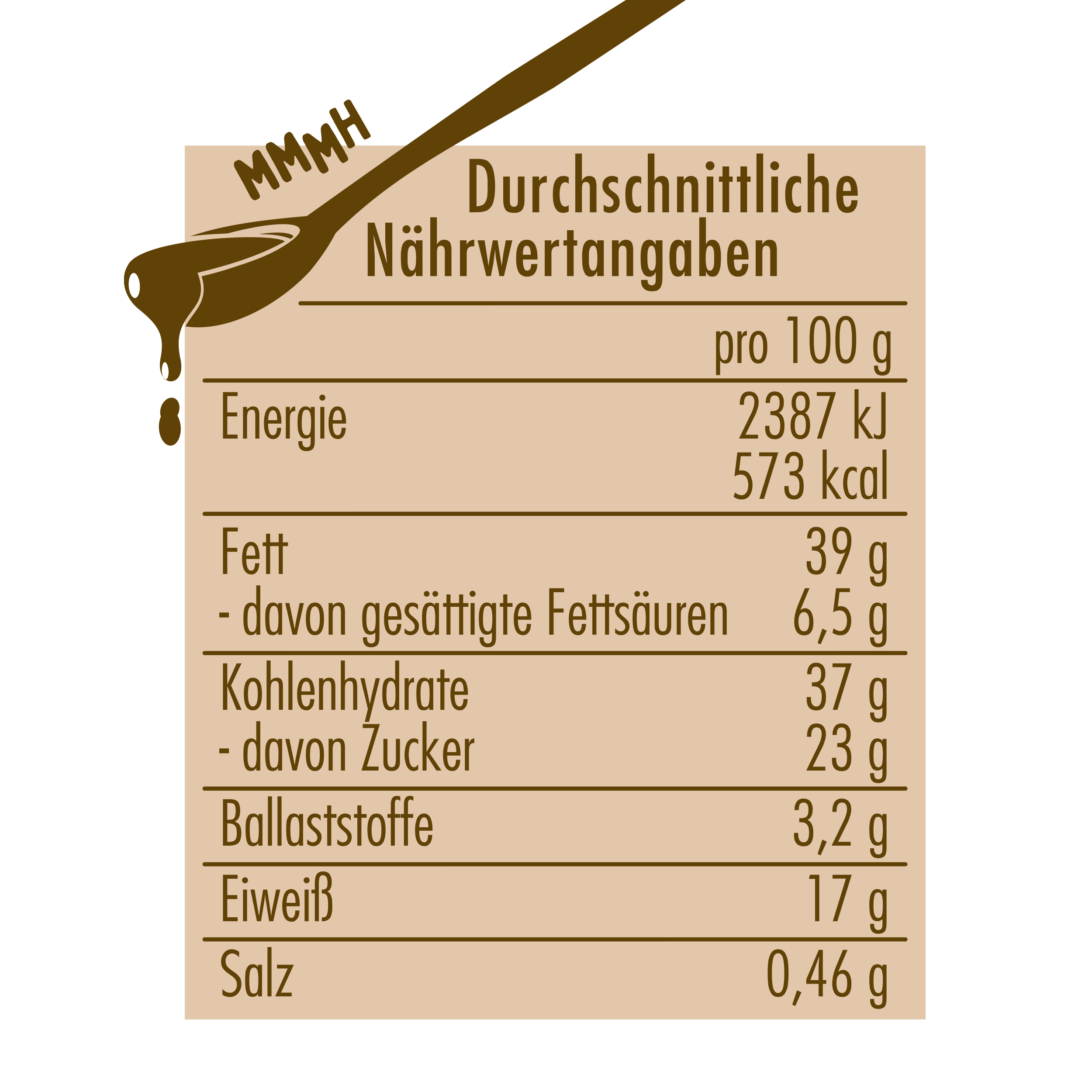 Unser Mus aus Cashewkernen Salted Caramel ist zu 100% vegan, glutenfrei und besteht ausschließlich aus Zutaten, die aus biologisch kontrolliertem Anbau stammen. So kannst du sicher sein, dass du ein Produkt in den Händen hältst, das nicht nur gut für dich, sondern auch gut für die Umwelt ist. Wenn du Wert auf gesunde Zutaten legst, wirst du diese Creme lieben.
