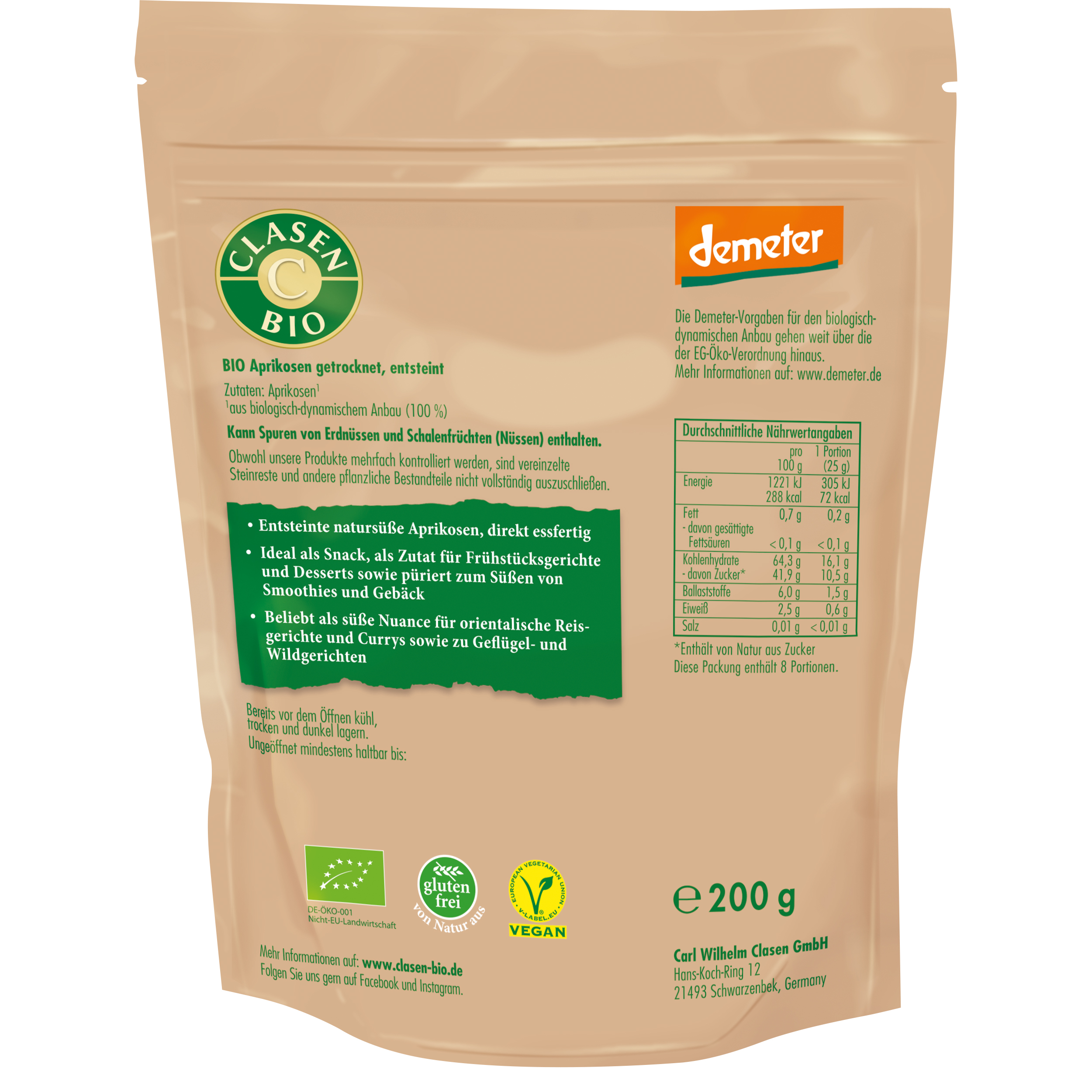 CLASEN BIO DEMETER Aprikosen – entsteint und getrocknet ein fruchtiger Snack
