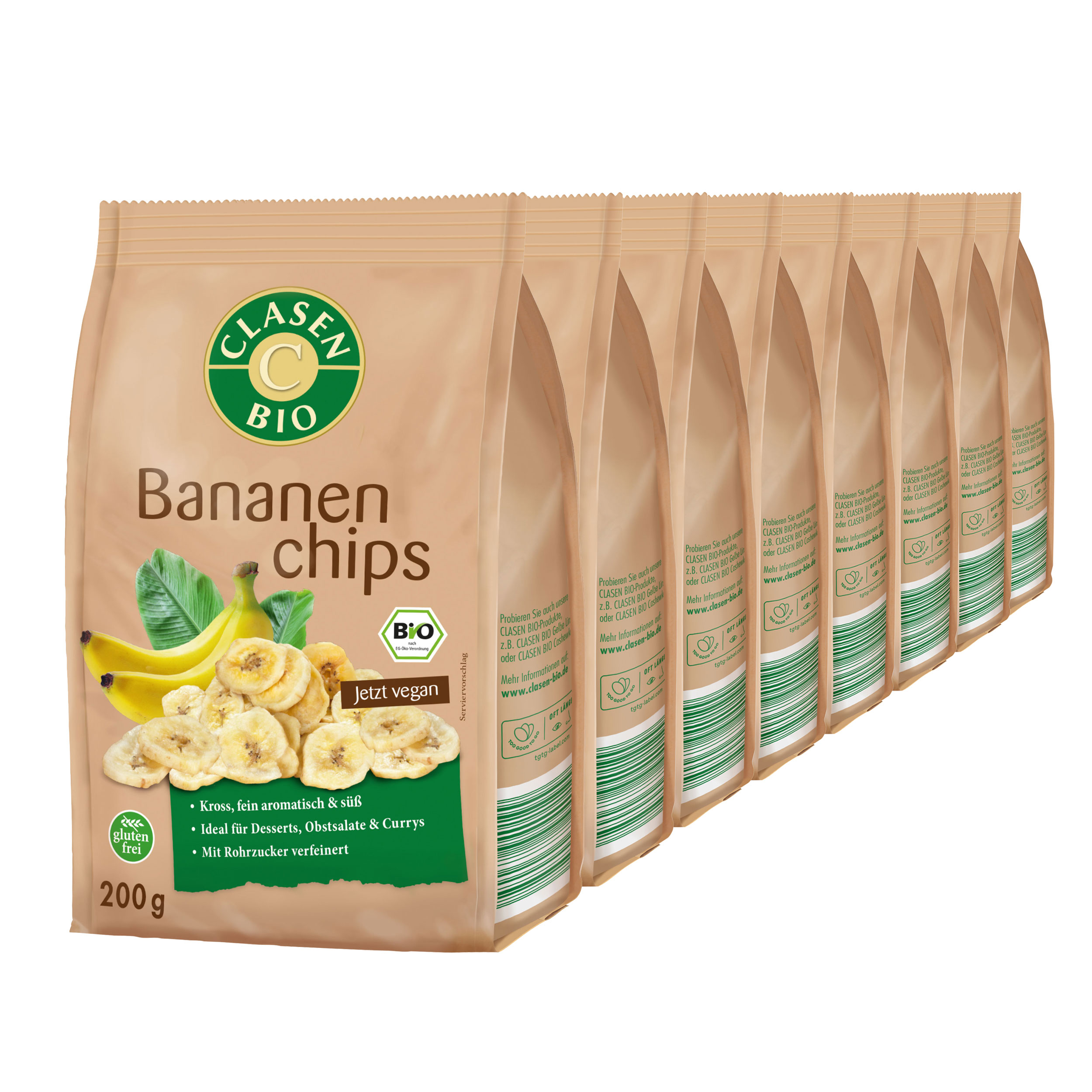 Die veganen Bananenchips von CLASEN BIO wirst du lieben! Mit ihrem fruchtigen Geschmack sind sie ein krosses Knabbervergnügen. Statt Kartoffel-Chips kannst du auch einmal knusprige Bananenchips genießen. Aber sie sind nicht nur ein abendlicher Snack. Sie sind auch ideal für Desserts, Obstsalate und Currys. Die frittierten Bananenscheiben, die ausschließlich mit Bio Zutaten verfeinert wurden, sind eine Quelle für: