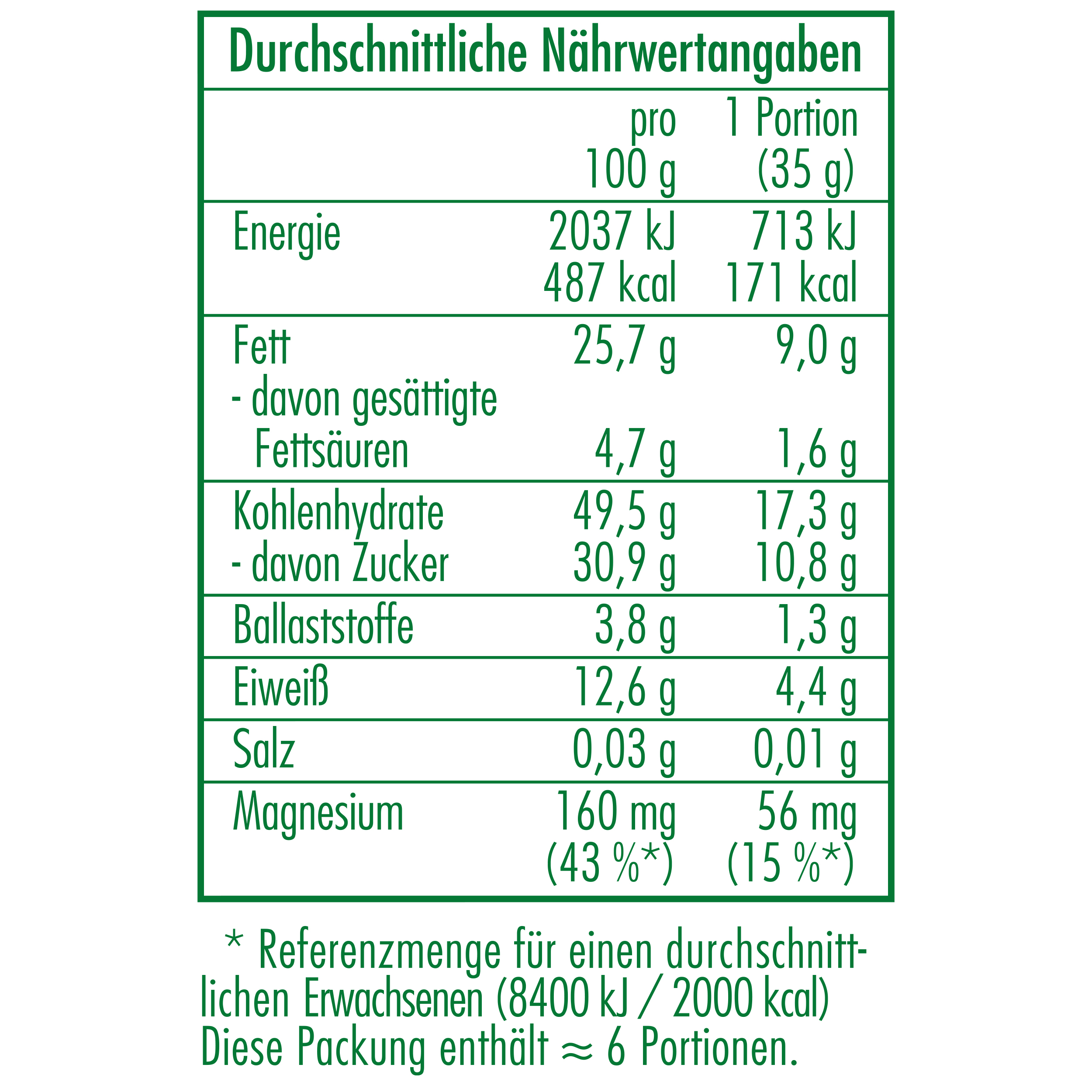 Hinweis: Um die genannten positiven Wirkungen zu erzielen, verzehre 1 Portion (35 g) CLASEN BIO Cashew-Cranberry-Mix pro Tag.