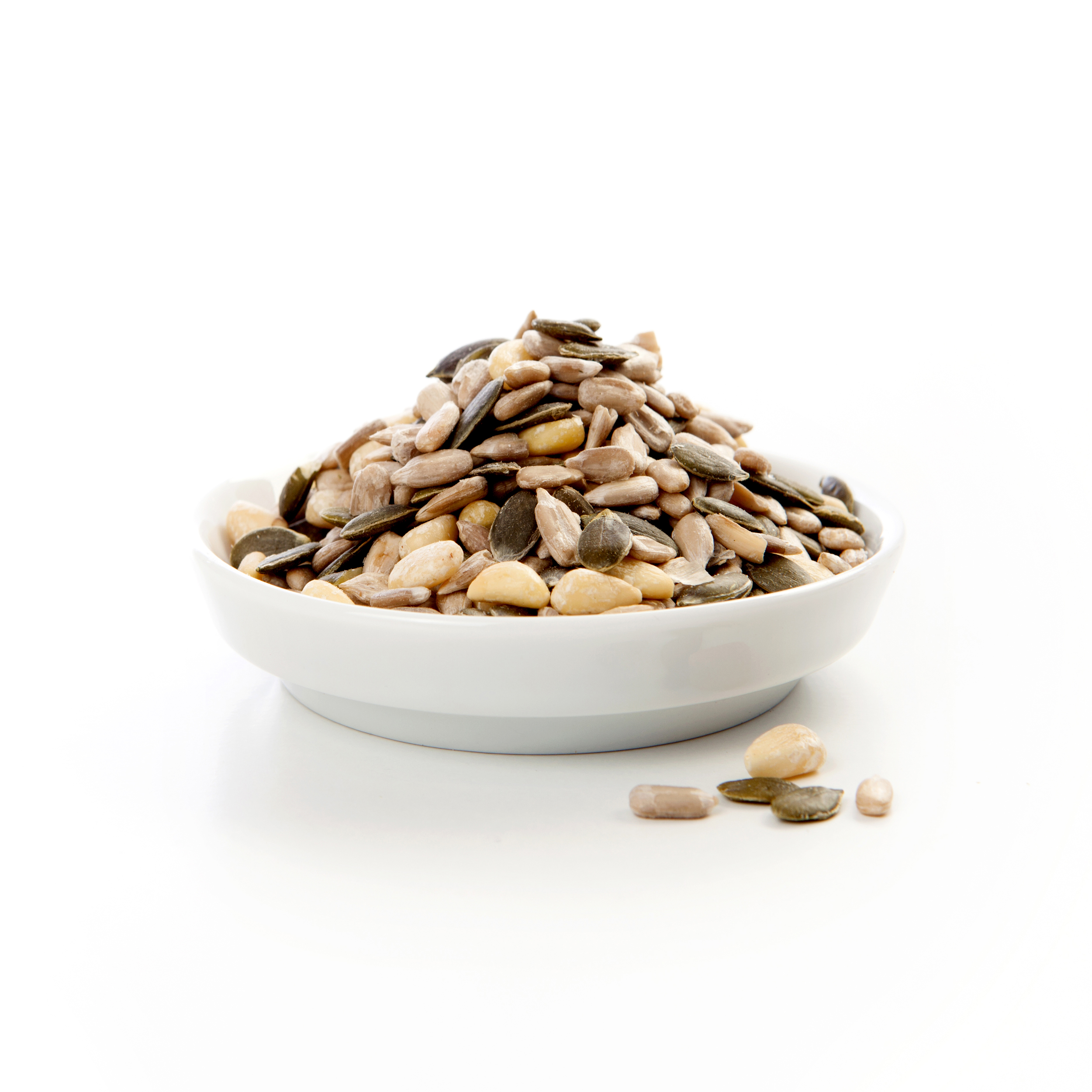 Sonnenblumen-, Kürbis- und Pinienkerne aus dem Bio-Anbau machen dieses Topping zu einer würzig aromatischen und nussigen Zutat, mit der jeder Salat, aber auch Aufläufe, Suppen und sogar Kekse und vieles mehr köstlich aufgewertet werden können.