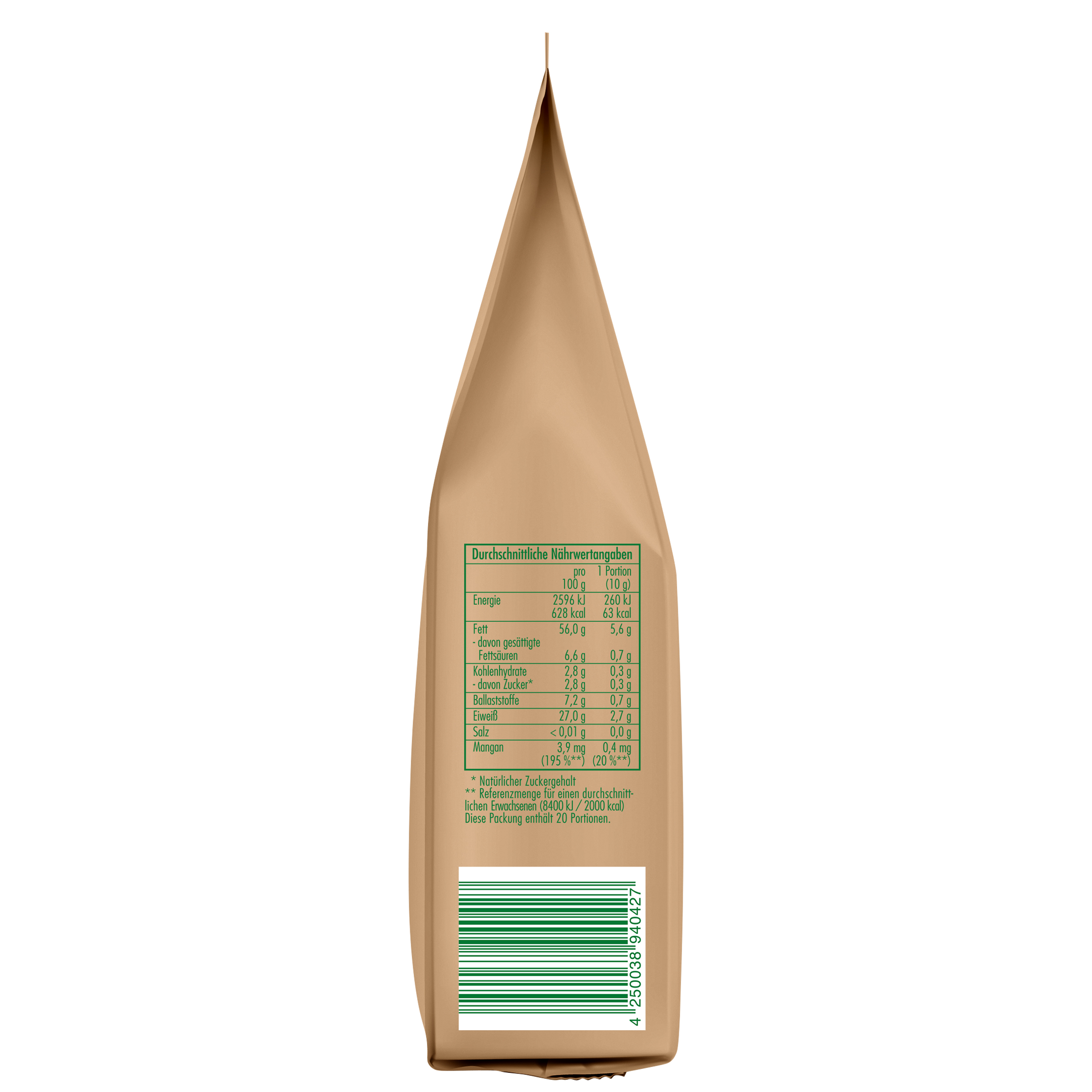 Zeitgleich sind auch die Kürbiskernen reif, werden geerntet, vom Fruchtfleisch befreit, geknackt und abschließend gebürstet, um ihr feines Silberhäutchen zu entfernen. Die knackigen Kerne steuern im Salatkerne-Mix ihre sattgrüne Farbe und ihren charakteristischen würzig aromatischen Geschmack bei.