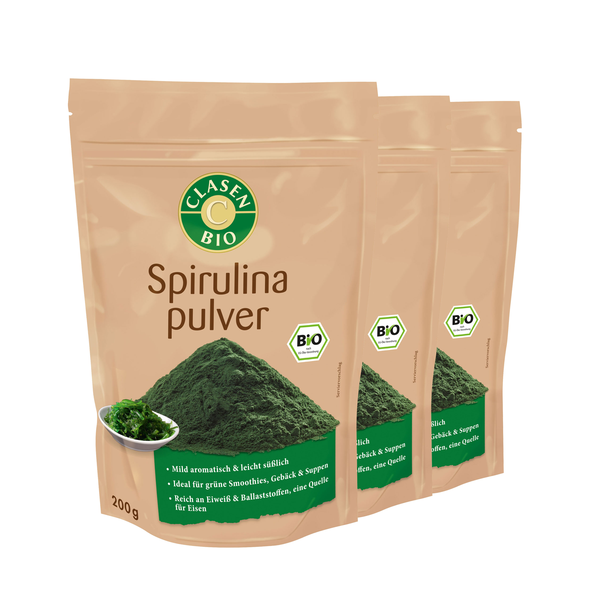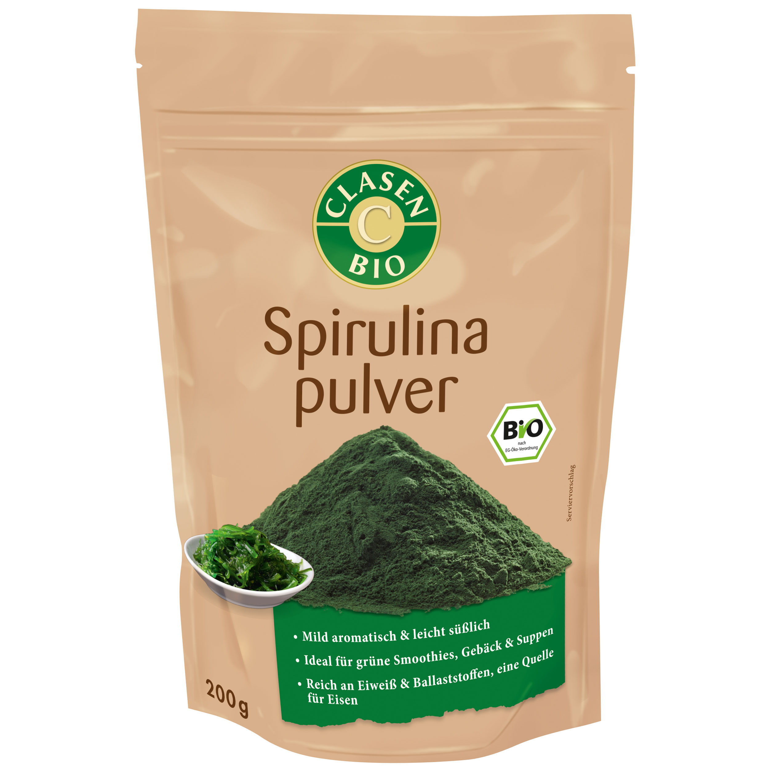Im CLASEN BIO Online-Shop kannst du ganz bewusst Spirulina Pulver kaufen. Spirulina Presslinge lassen sich schlecht portionieren und nur umständlich in ein Smoothie oder einen Fruchtsaft einrühren. Dort macht sich das Pulver aber wegen seiner intensive Farbe besonders gut! Einen Pressling müsstest du erst in Wasser einweichen, um ihn weiter zu verarbeiten. Unser Bio Spirulina Pulver bekommst du in einer praktischen wiederverschließbaren Tüte, aus der du ganz einfach deine Portion entnehmen kannst. Wenn du öfter kleine Mengen verwenden möchtest, ist das Pulver viel praktischer. Um von den oben genannten positiven Wirkungen zu profitieren, empfehlen wir dir eine Portion (6 g) CLASEN BIO Spirulinapulver pro Tag. Und nicht vergessen: Eine abwechslungsreiche, ausgewogene Ernährung ist die Basis einer gesunden Lebensweise.