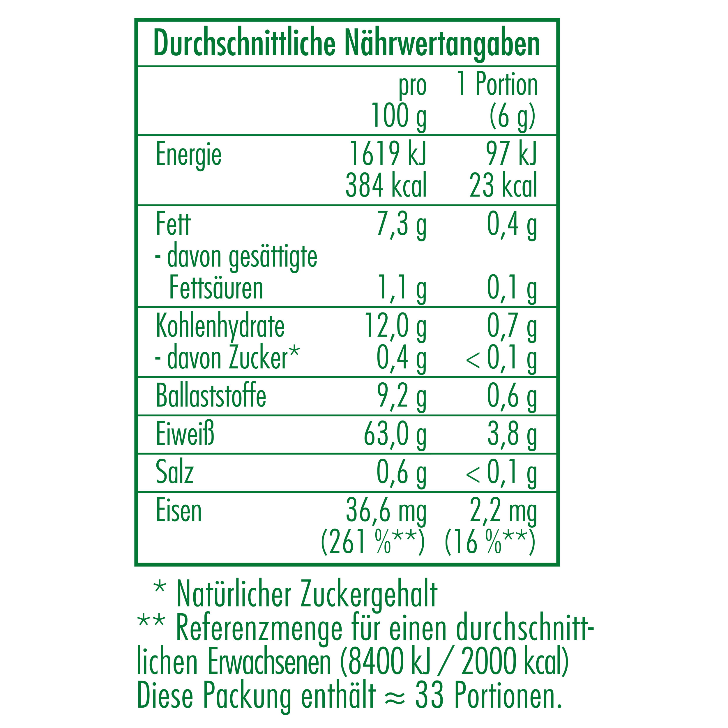 - Reich an Eiweiß & Ballaststoffen, eine Quelle für Eisen