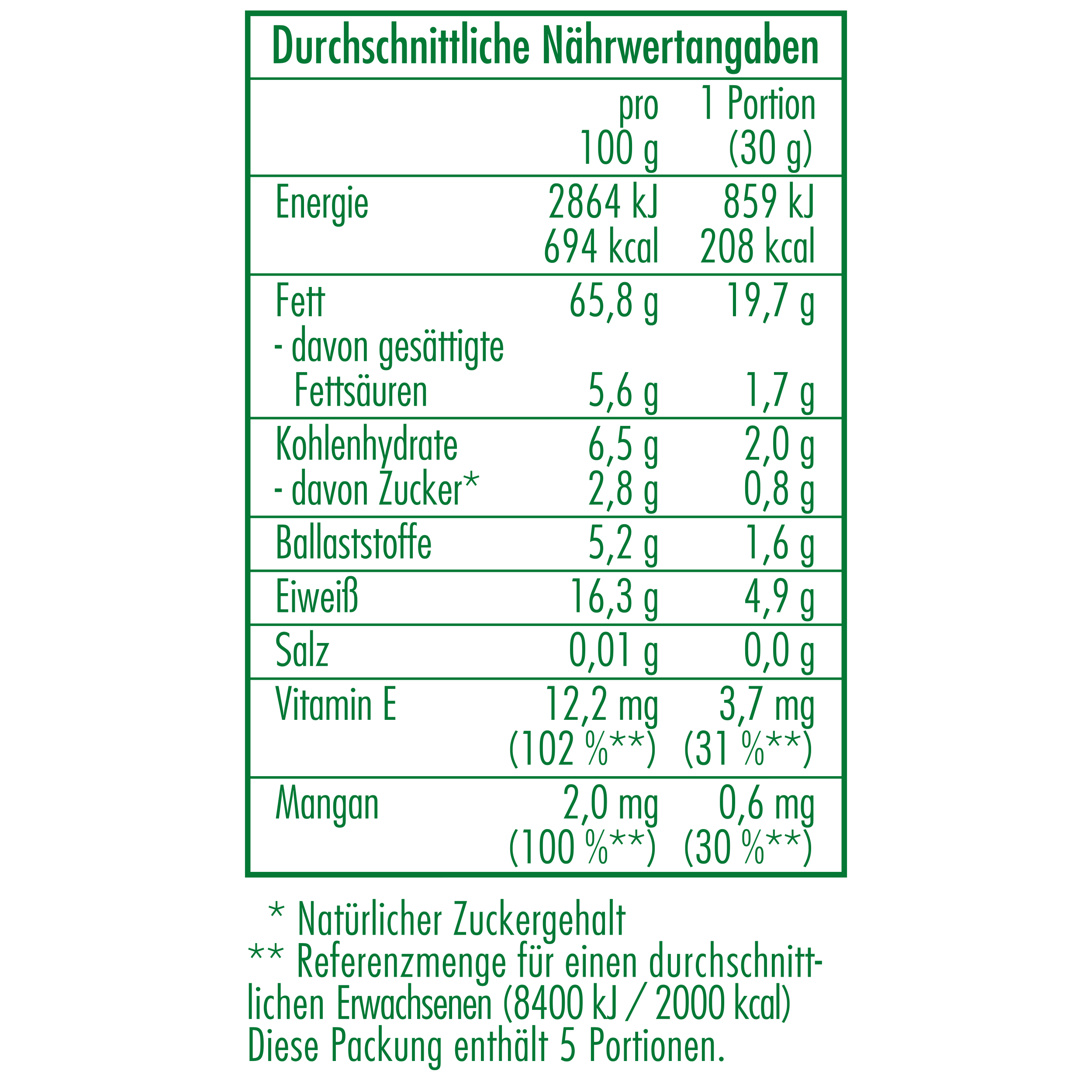 - Ballaststoffquelle, reich an Vitamin E & Mangan