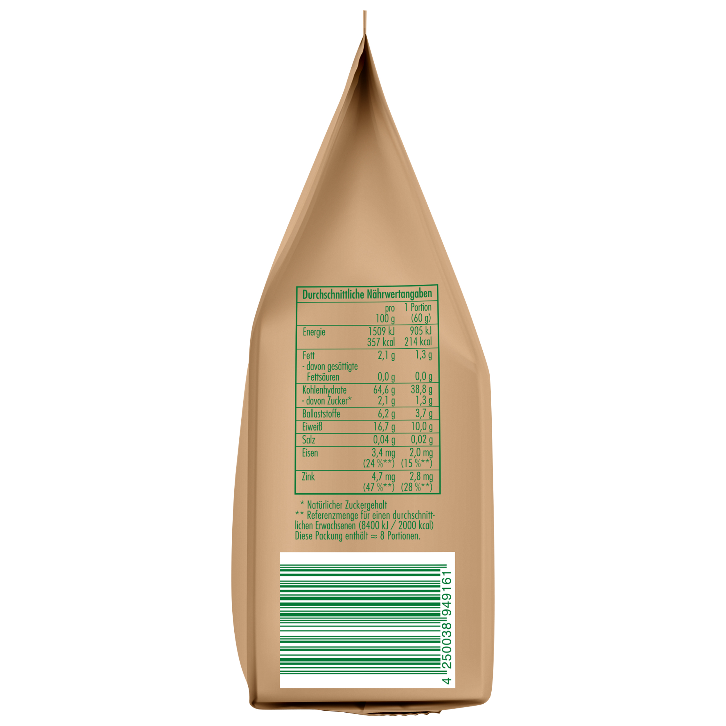 Um von den oben genannten positiven Wirkungen zu profitieren, verzehre 1 Portion (60 g) CLASEN BIO Demeter Einkorn pro Tag.